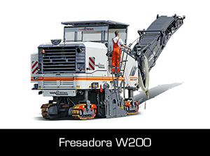 Fresadora compacta de grande porte W 200 que pode ser equipada com tambores fresadores das seguintes larguras de trabalho: 1,50 m, 2,0 m ou 2,20 m. É possível selecionar três diferentes velocidades do tambor fresador permitindo assim uma ampla gama de aplicações como: reabilitação de superfícies em larga escala, remoção completa do pavimento com profundidade total, fresagem fina, e muito mais. Alinhamento automático da máquina em posição paralela à superfície através do PTS, sistema inteligente ISC de acionamento dos trens de esteiras para máxima tração, e baixo custo operacional graças ao sistema WIDRIVE de gestão da máquina. A fresadora pode ser equipada com o sistema de nivelamento automático LEVEL PRO da Wirtgen.
